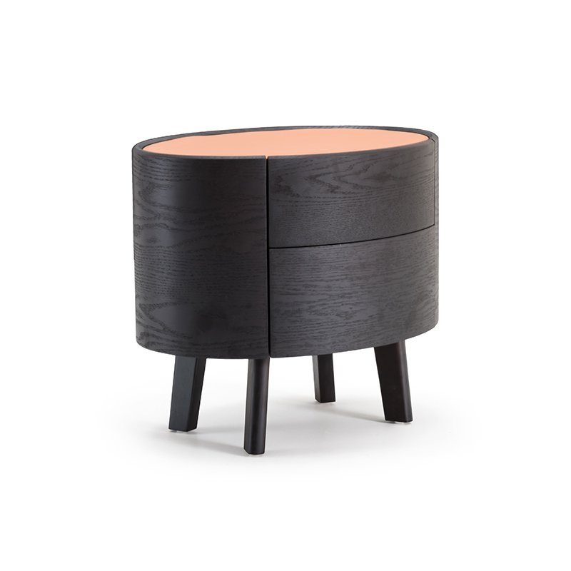 A roundly wenge solid wood night stand with a pure Italian top leather brings sculptural-yet-functional note to our range of side tables that can fit in any space at any place.