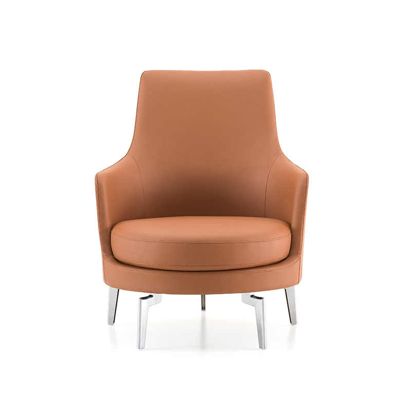 A fully Italian leather armed chair that is decorated to be comfortable with 5 stainless steel legs with a timeless good looking.