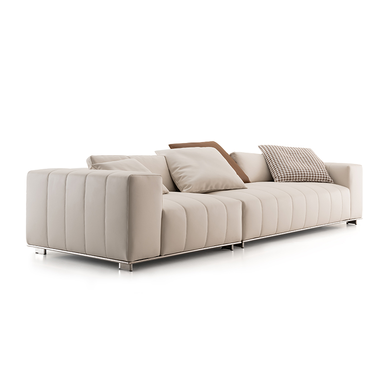 The glamorous three-seater sofa with a high-resolution, unique quality leather that can last a lifetime that stands on a solid stainless steel base with a ruffly cushions that make it even more comfortable.